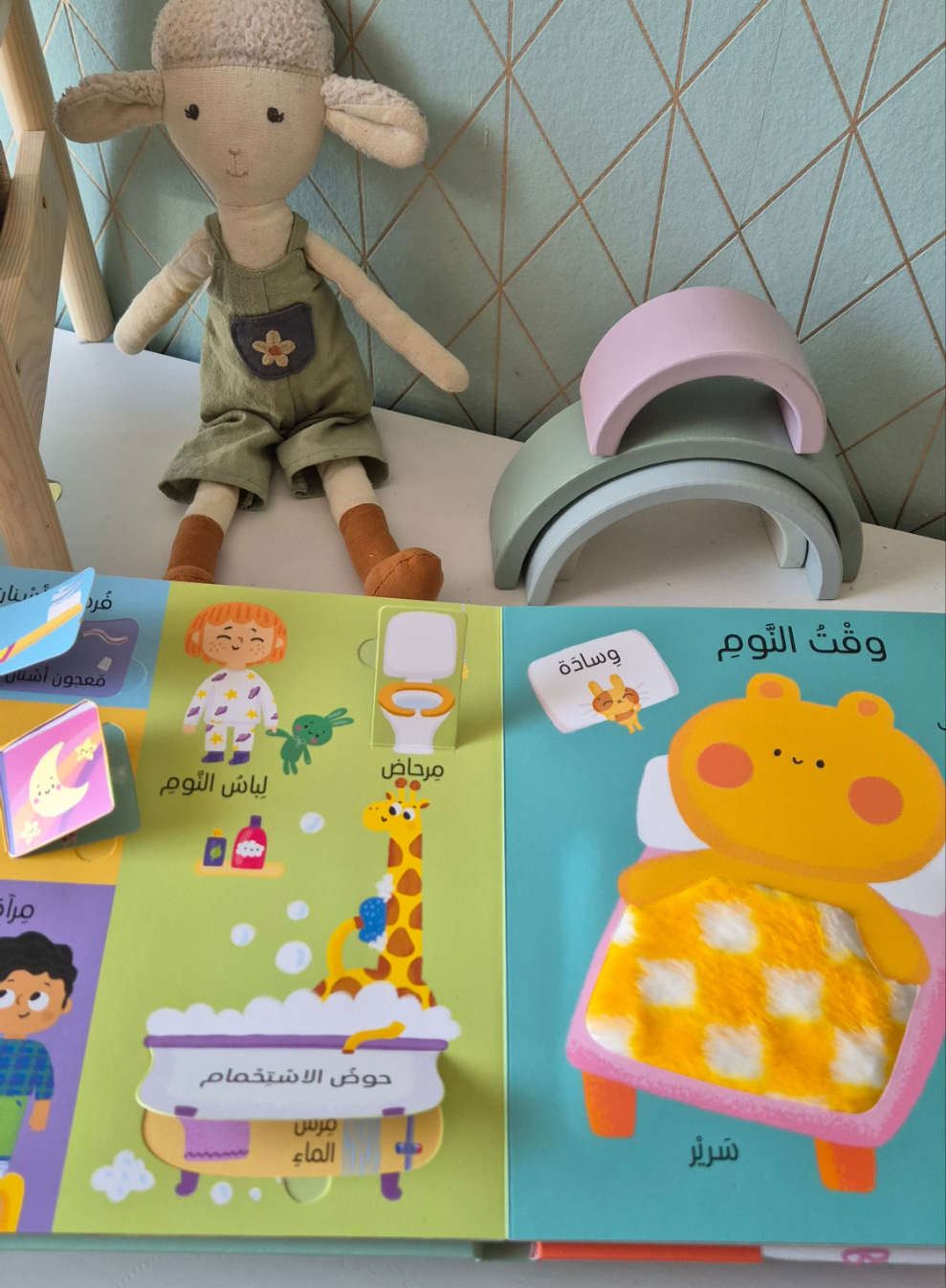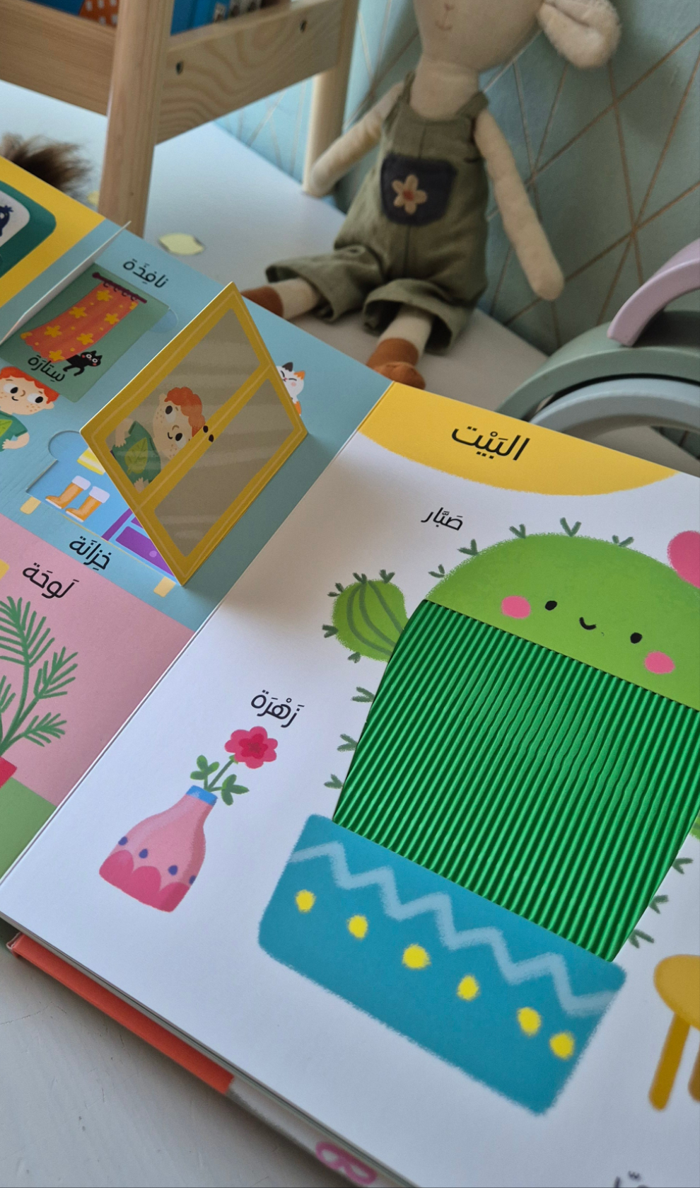 ألعابٌ وملابسٌ وطعامٌ...، قُمْ بتنميةِ مفرداتِ طفلِكَ الصَّغيرِ بسُهولةٍ بفضلِ الرُّسومِ التَّوضيحيَّةِ النَّابضةِ بالحياةِ، وبمساعدةِ اللَّوحاتِ المرحةِ. أكثرُ من 100 كلمةٍ أساسيَّةٍ تتعلَّقُ بعالمِ الطِّفلِ ليكتشفَها طفلُكَ ويتعلَّمَها!