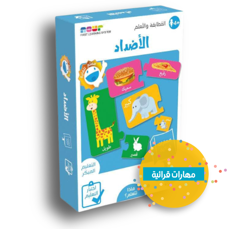تتضمَّنُ هذهِ اللُّعبةُ صوراً لكلماتٍ مختلفةٍ. ويجبُ على الطِّفلِ مُطابقةُ الكلماتِ المُتضادَّةِ لإكمالِ اللُّغزِ. ستُساعدِ هذهِ اللُّعبةُ الطِّفلَ على تطويرِ مهاراتِ التَّعلُّمِ المُبكِّرِ.